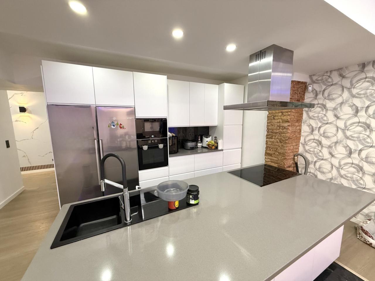 • Descripción Loft completamente reformado de diseño, situado en el barrio de Sants-Badal, céntrico y con buenas comunicaciones. Tiene una superficie de 150 m2, situado en planta baja con salida a la calle a través de 3 puertas. Está distribuido en: amplio recibidor, 3 habitaciones dobles, salón-comedor de 40 m2, cocina reformada tipo americana con isla, un amplio baño reformado con bañera de hidromasaje y un aseo de cortesía-cuarto de máquinas, suelos de mármol y gres porcelánico, carpintería de aluminio, armarios empotrados, puertas lacadas en blanco y puerta blindada de seguridad. Calefacción y aire acondicionado por conductos. Finca del año 1964 rehabilitada con ascensor. Próximo a zonas verdes, como la plaza de l Olivereta, comercio de proximidad, cerca del mercado de Sants. Próximo a las paradas de metro Santa Eulàlia L1 y Mercat Nou L1 y líneas de autobuses: V1 y 70. No dispone de cédula de habitabilidad.